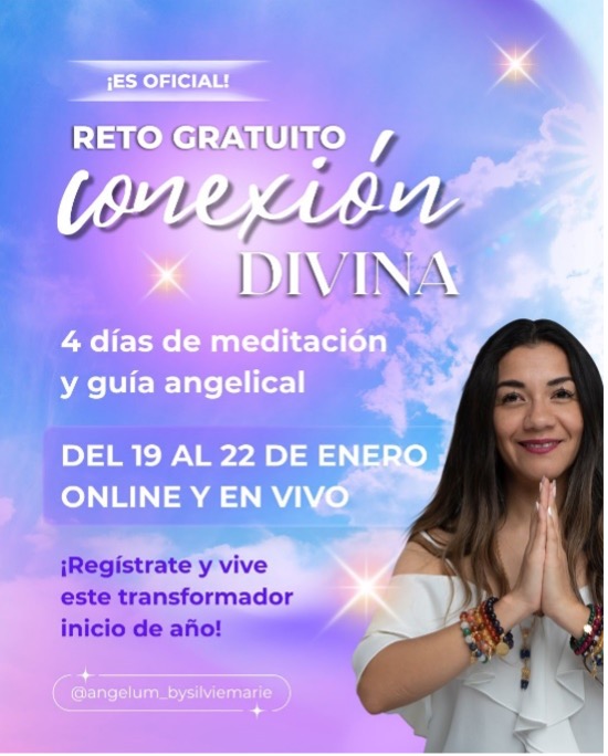 Este nuevo ciclo inicia acompañado por la guía amorosa de los ángeles y se abre con el Reto Gratuito Conexión Divina, un espacio de 4 días para meditar, limpiar tu energía, fortalecer tu protección y activar abundancia y prosperidad.